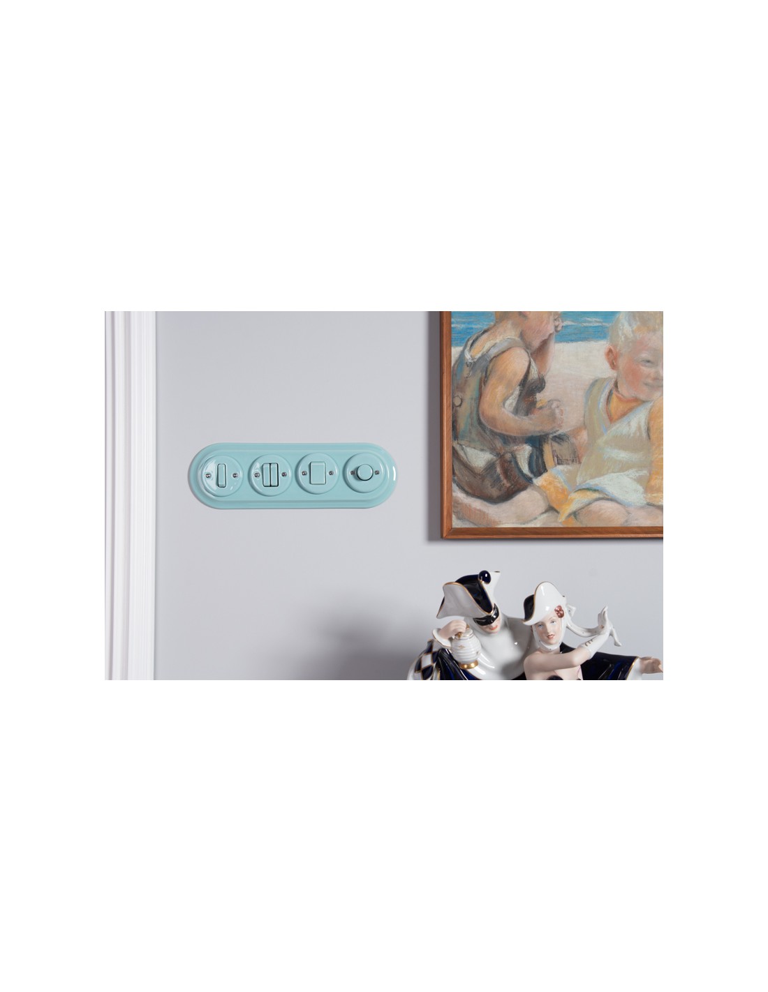 Vypínače a zásuvky prodáváme v komplexu s keramickými rámečky jednoduchými nebo BEZ rámů (dřevěné jednotlivé rámečky jsou k dispozici na jiných Našich aukcích). Chcete-li vytvořit sadu skládající se z několika prvků (zásuvek, vypínačů), je třeba zakoupit zásuvku nebo vypínač bez rámečku a dokoupit rámečkydvojité, trojité nebo čtyřnásobné. V této sérii pro podomítkové příslušenství mámekeramické a dřevěné rámy.