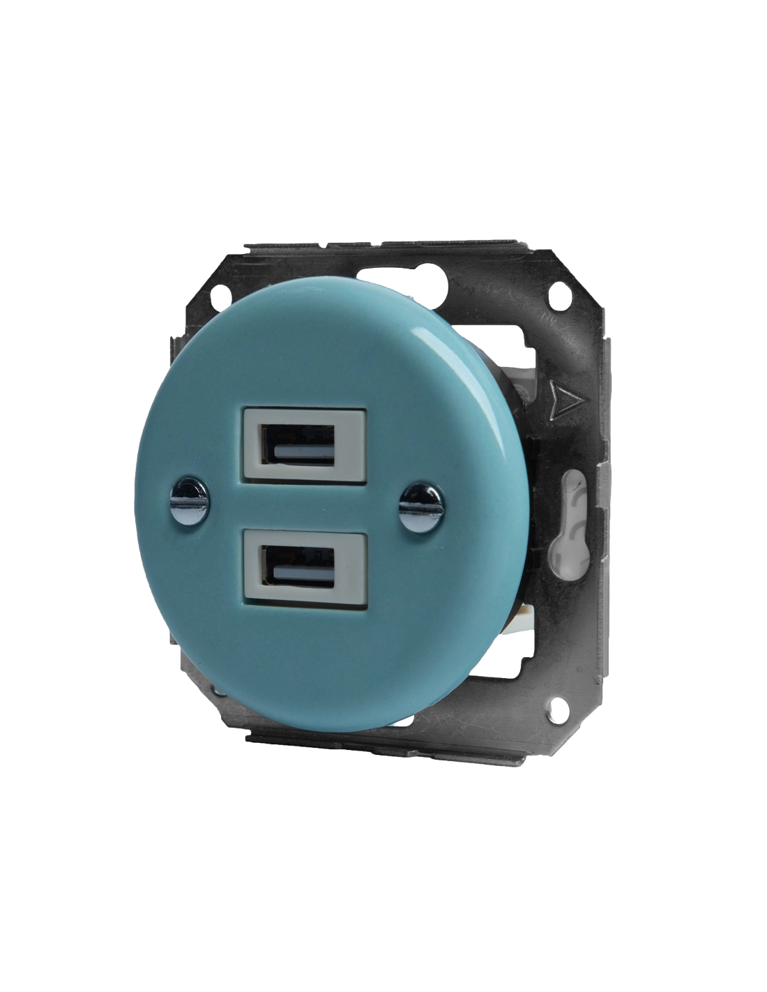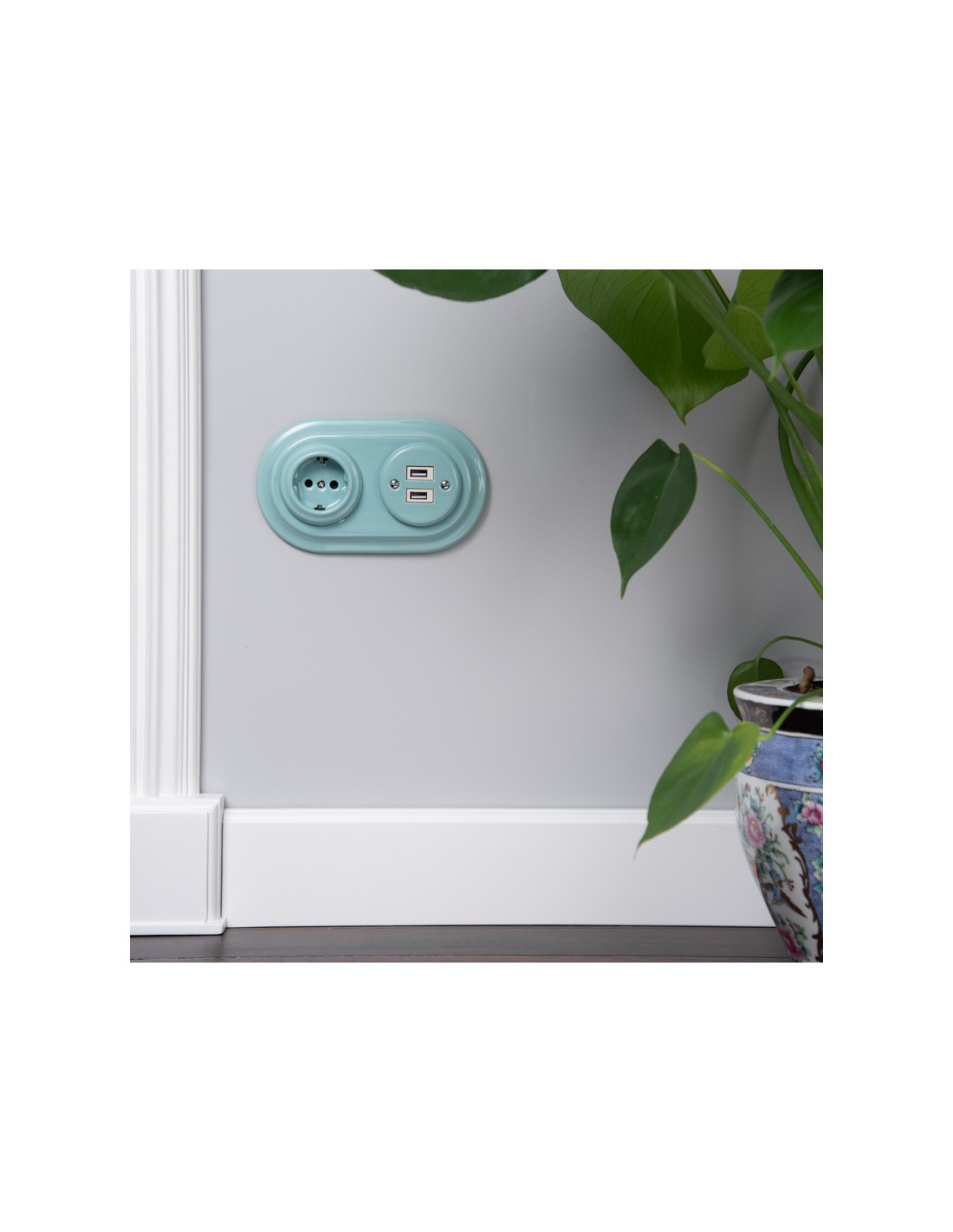KERAMICKÁ ZÁSUVKA 2xUSB RETRO MÁTOVÁ PODOMÍTKA PASTEL