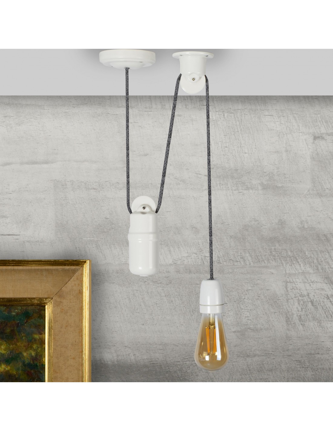 Stropní kolo spolupracuje v osvětlovacích instalacích spolu s protizávažím, které dohromady tvoří převody pro nastavení výšky stínidla.