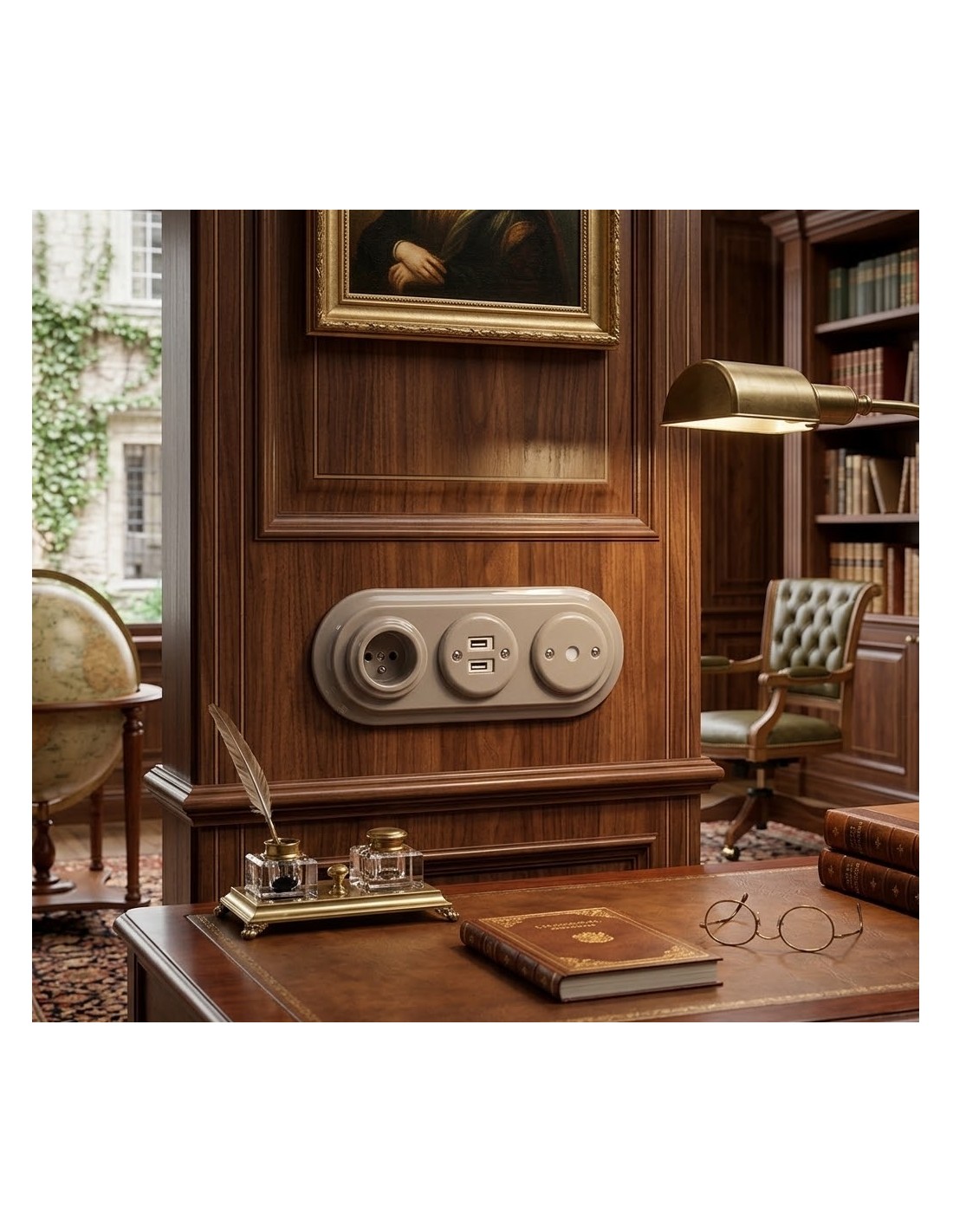 La marque JLM LUX RETRO fabrique des accessoires électriques exclusifs en porcelaine et plastique 230V, y compris interrupteurs et prises en saillie et encastrés, cadres, boîtes d’installation, serre-câbles, luminaires, rosaces de plafond, passe-câbles, ampoules, câbles tressés et appliques murales.