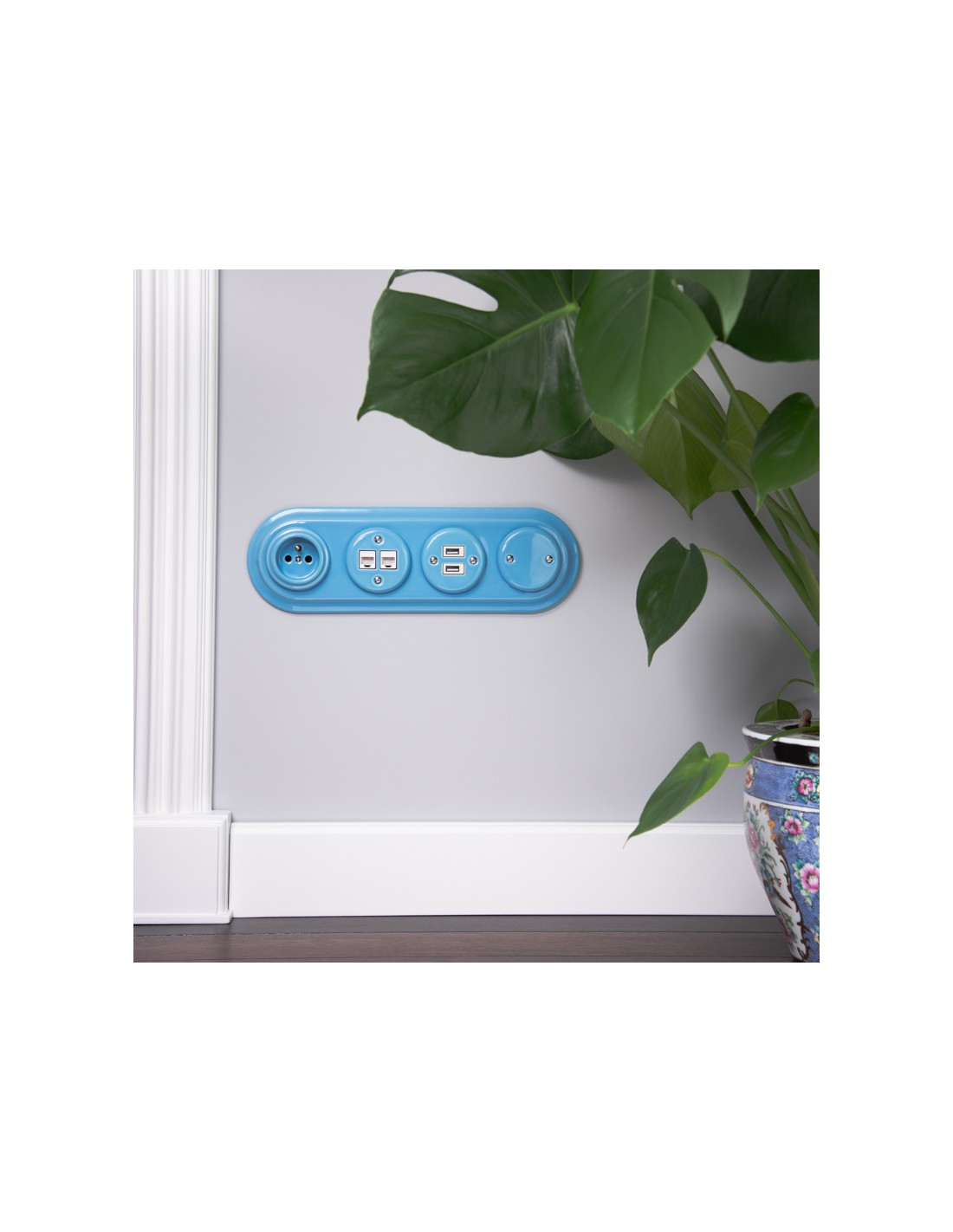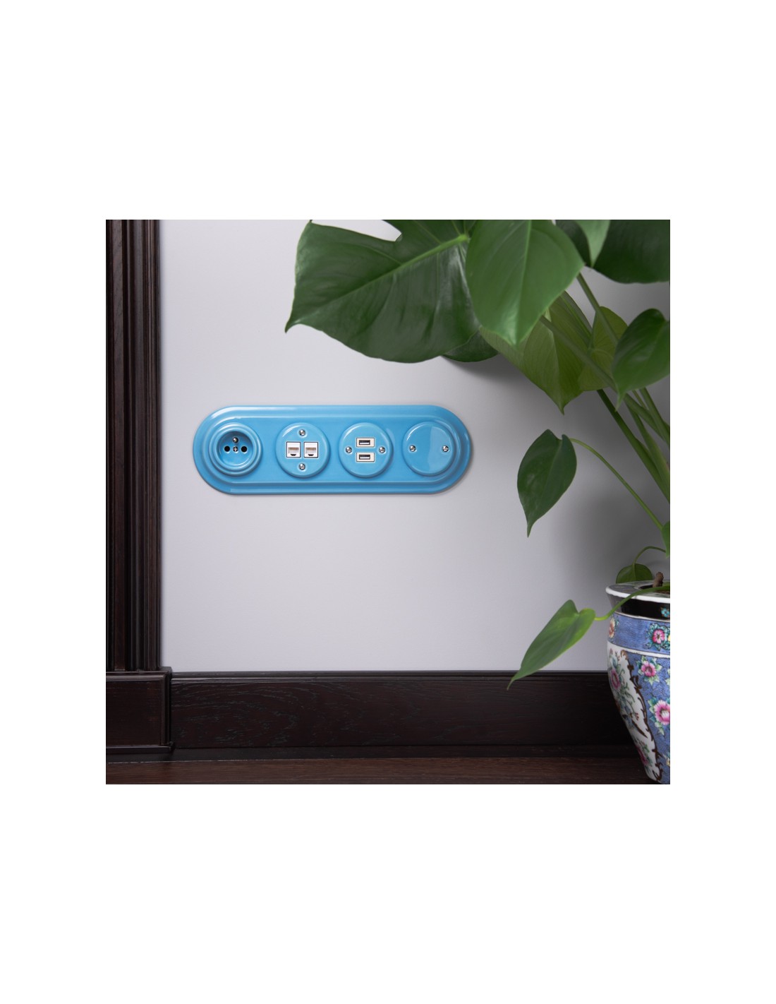 We sell sockets and switches without frames. If you want to create a set consisting of several elements (sockets, switches), you should buy a socket or switch without a frame and buy single, double, triple or quadruple frames. In this series, we have ceramic and wooden frames for both flush-mounted and surface-mounted equipment.