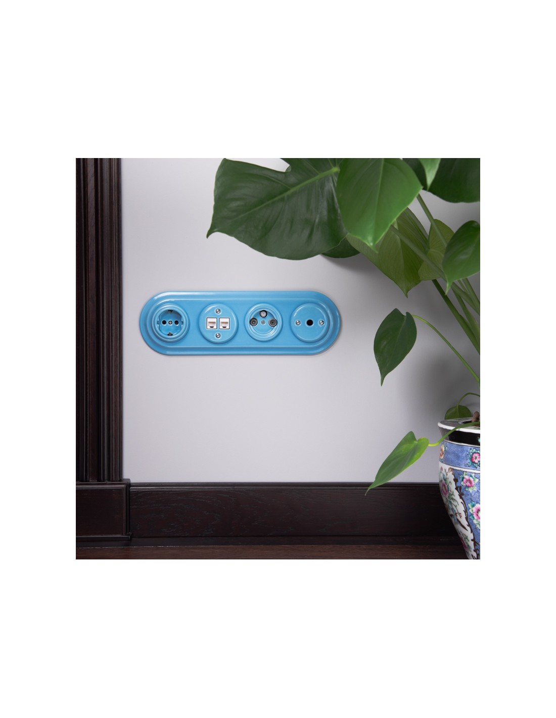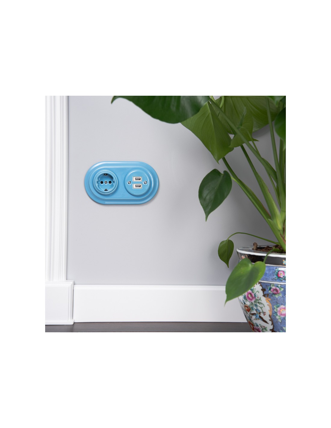 CERAMIC SCHUKO FLUSH-MOUNTED SOCKET PASTEL AZURE