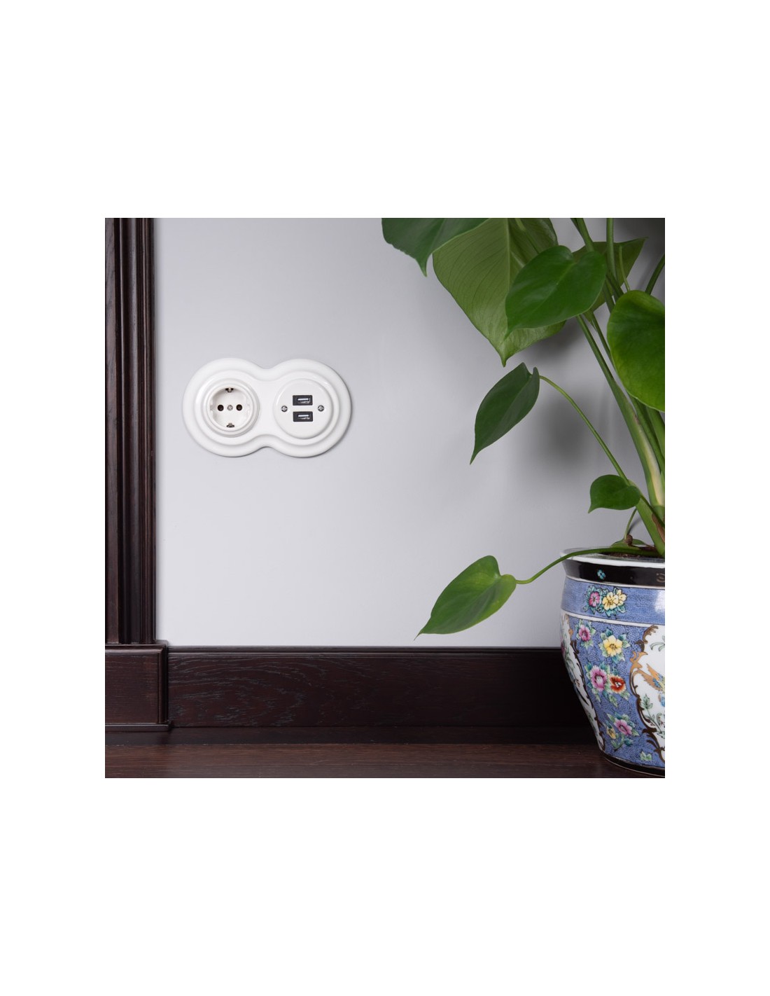 The JLM LUX RETRO brand is a manufacturer of exclusive porcelain and plastic 230V electrical equipment, including: switches and sockets in surface-mounted and recessed versions, frames, boxes, cable holders, lighting fixtures, cable entries, light bulbs, braided cables and wall lamps.