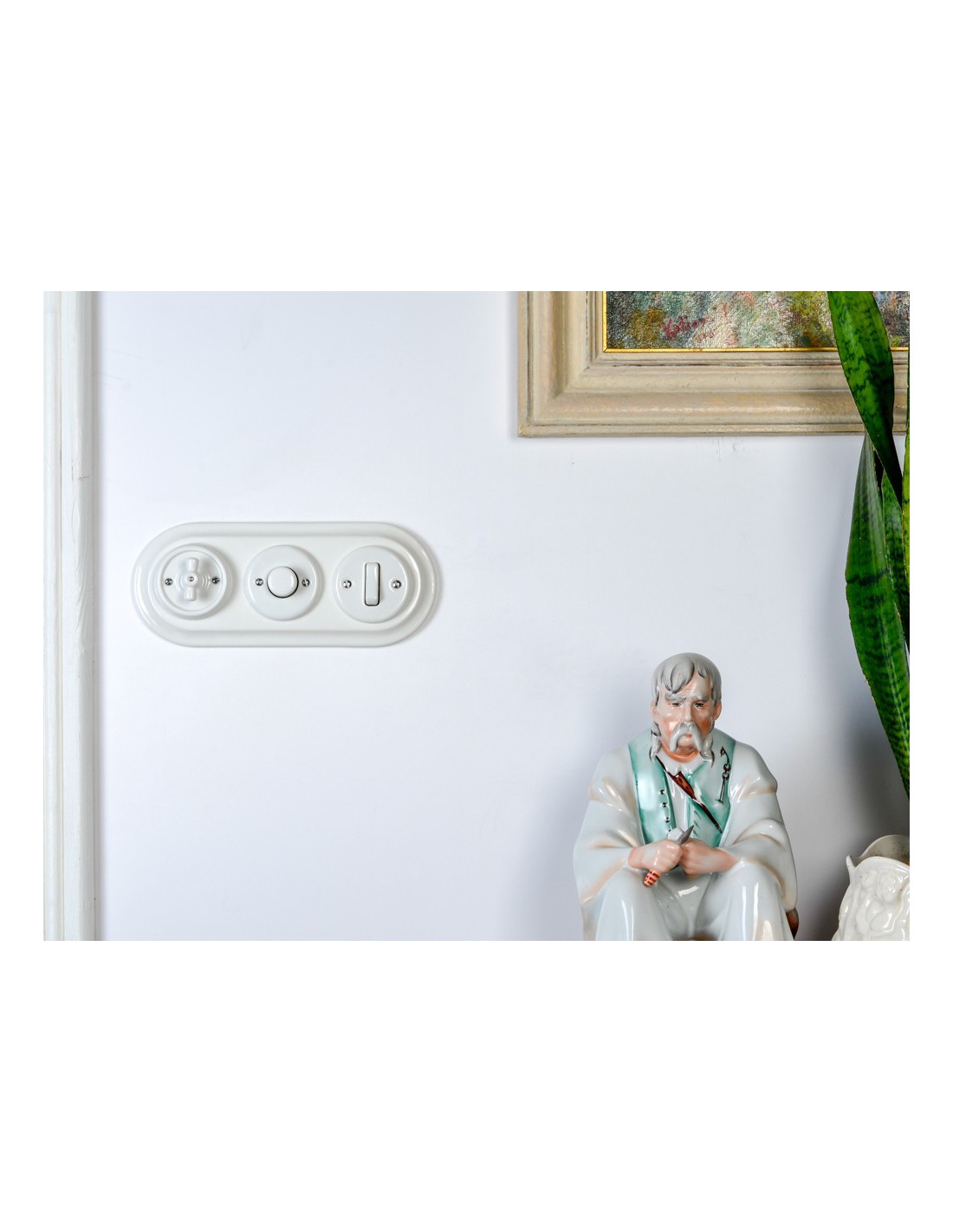 Marka JLM LUX RETRO, to producent ekskluzywnego porcelanowego jak i wykonanego z tworzywa osprzętu elektrycznego 230V, m.in. włączniki i gniazda w wersji natynkowej i podtynkowej, ramki, puszki, uchwyty przewodów, oprawy oświetleniowe, podsufitki, przepusty kablowe, żarówki, przewody w oplotach oraz kinkiety.
