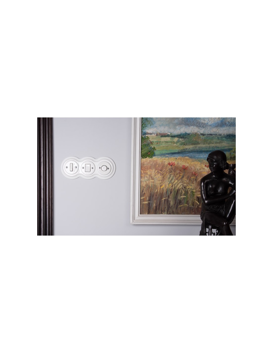 Gniazda i włączniki sprzedajemy bez ramek. Chcąc utworzyć zestaw składający się z kilku elementów (gniazd, włączników), należy kupić gniazdo lub włącznik bez ramki i dokupić ramki pojedyncze, podwójne, potrójne lub poczwórne. W tej serii do osprzętu podtynkowego posiadamy ramki ceramiczne oraz drewniane.