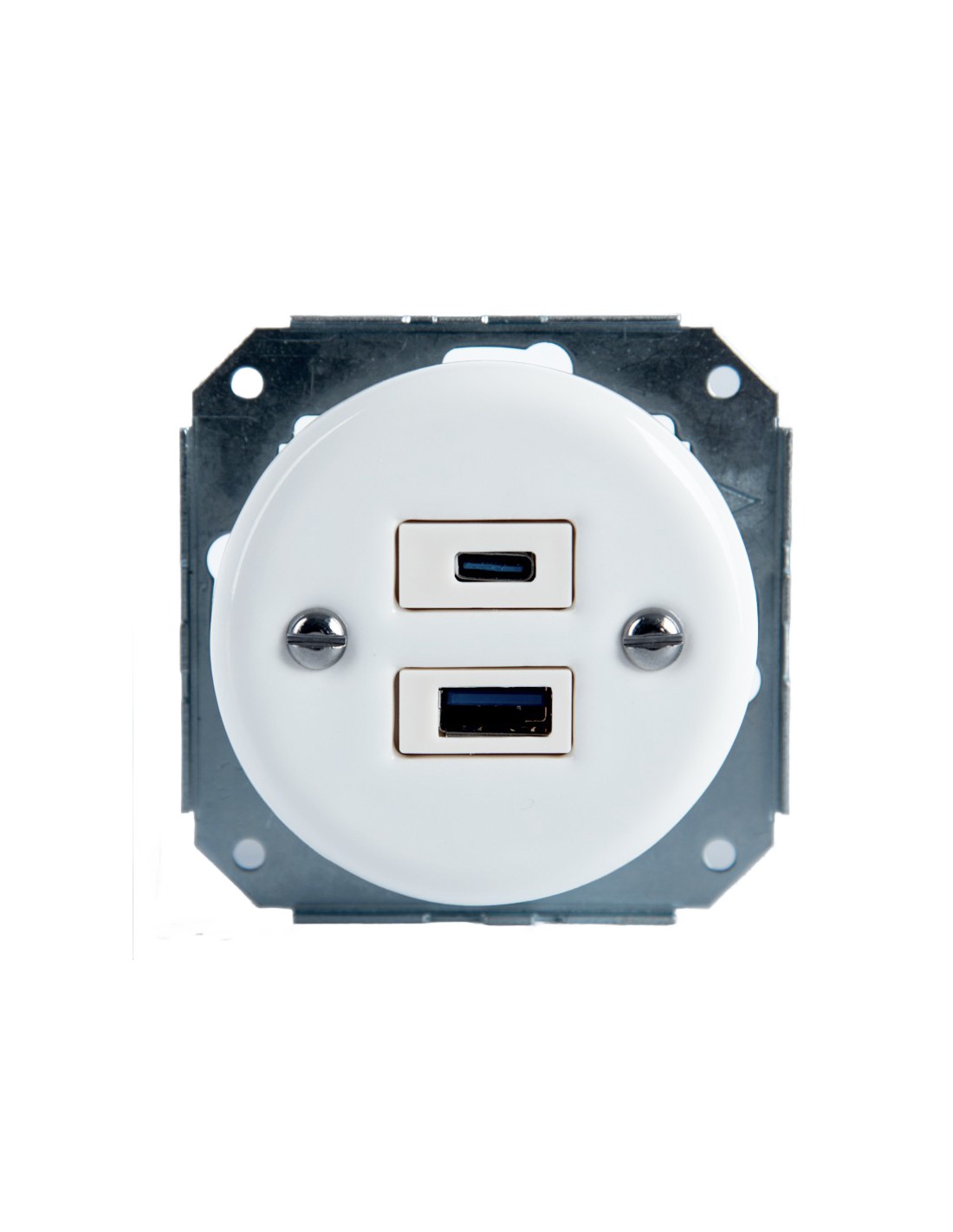 CERAMICZNE GNIAZDO PODTYNKOWE 1xUSB A/1xUSB C BIAŁE