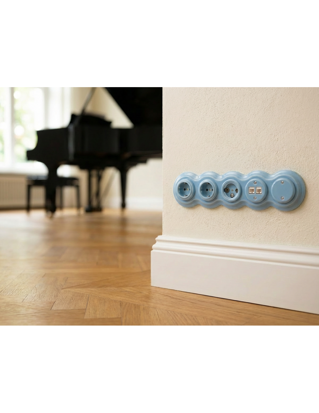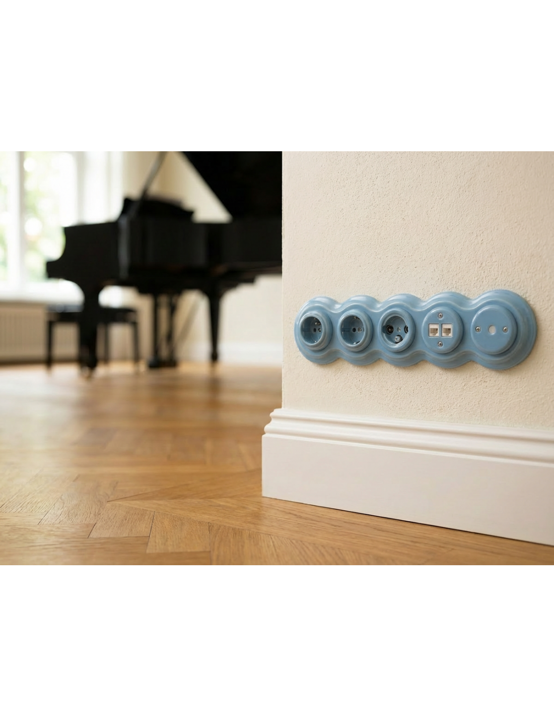 Marka JLM LUX RETRO, to producent ekskluzywnego porcelanowego jak i wykonanego z tworzywa osprzętu elektrycznego 230V, m.in. włączniki i gniazda w wersji natynkowej i podtynkowej, ramki, puszki, uchwyty przewodów, oprawy oświetleniowe, podsufitki, przepusty kablowe, żarówki, przewody w oplotach oraz kinkiety.