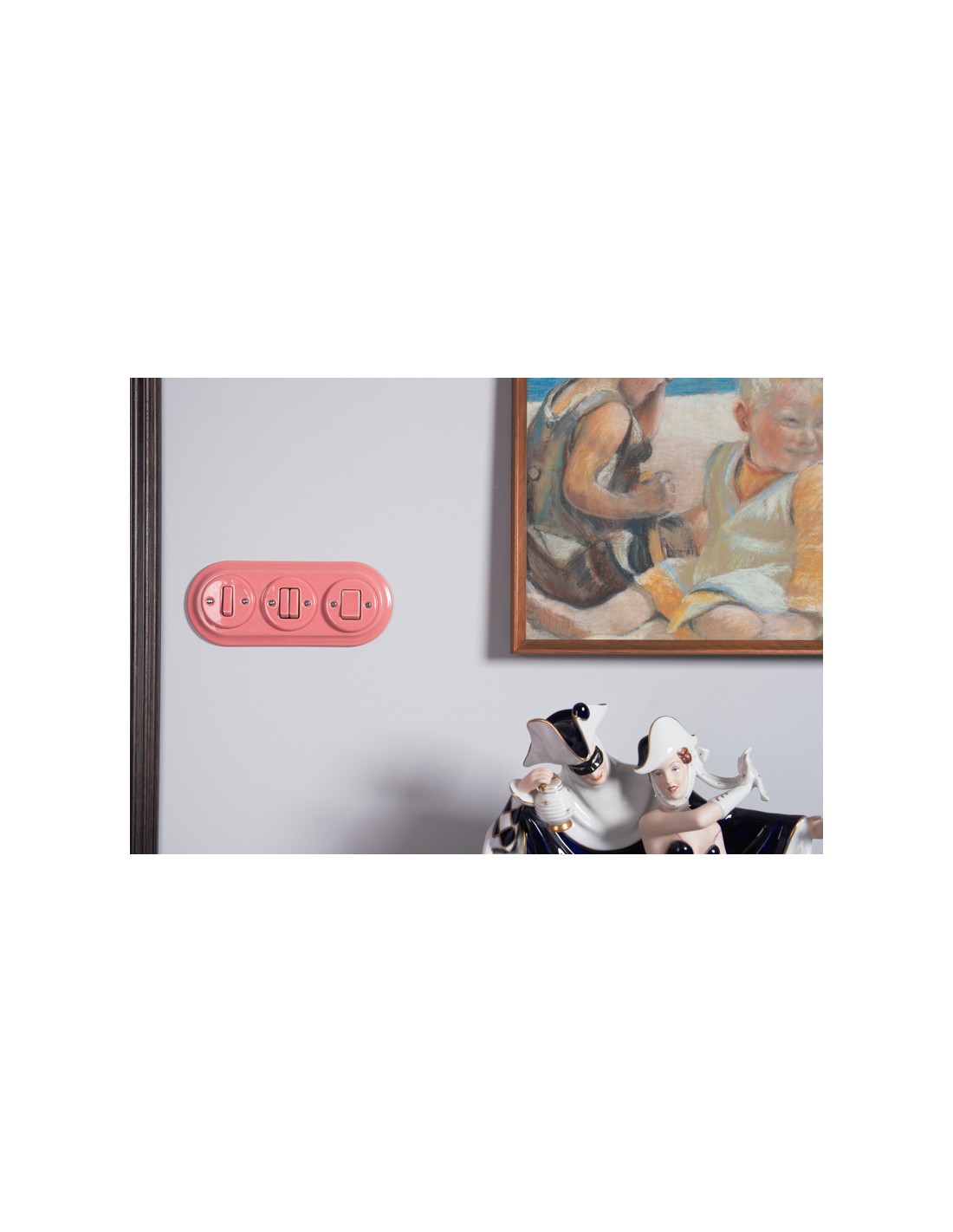 Zapínače a zásuvky predávame v komplete s keramickými rámami jednotlivých alebo BEZ rámov (drevené jednotlivé rámy sú k dispozícii na iných našich aukciách). Ak chcete vytvoriť sadu pozostávajúcu z niekoľkých prvkov (zásuvky, vypínače), musíte si kúpiť zásuvku alebo vypínač bez rámčeka a dokúpiť rámčeky dvojité, trojité alebo štvorité. V tejto sérii pre podomietkové príslušenstvo máme keramické a drevené rámy.
